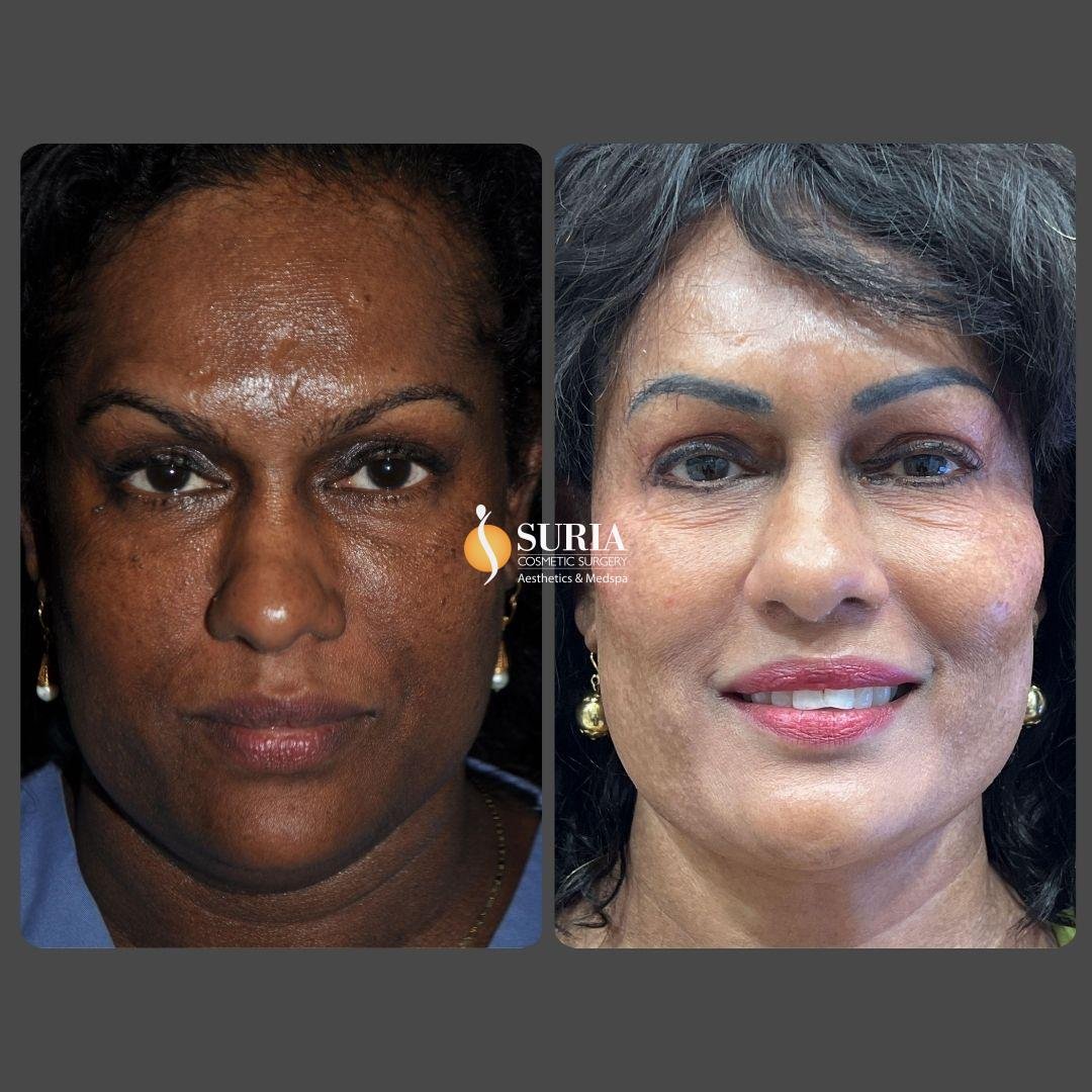Dr. Kusuma was able to give me my face back and a much younger and more beautiful one at that. He performed a full-face lift, upper and lower lid surgeries and neck surgery. I look much younger, and my features were not changed. I wasn’t pumped up with fillers either. I have my face back. I feel beautiful. I will forever be indebted to Dr. Kusuma (at Suria Plastic Surgery.)